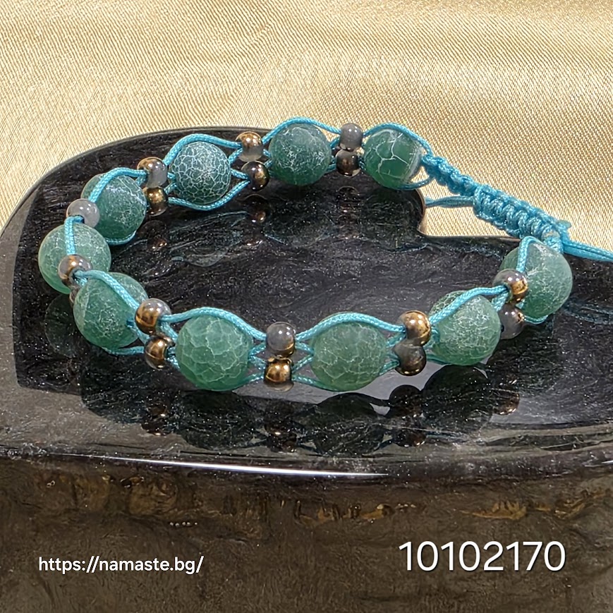 Гривна „Гласът на Морето“ е създадена като нежно енергийно послание от дълбините на синьото – цветът на водата, на небето, на безкрая. Тя носи тишина и покой, като шепот на морски вълни, които галят душата и освобождават ума от тежестта на ежедневието. Синият ахат е камък на истината, защитата и вътрешния баланс – той съчетава меката сила на океана и стабилността на земята, за да помогне на своя притежател да живее в хармония със себе си и с околния свят.