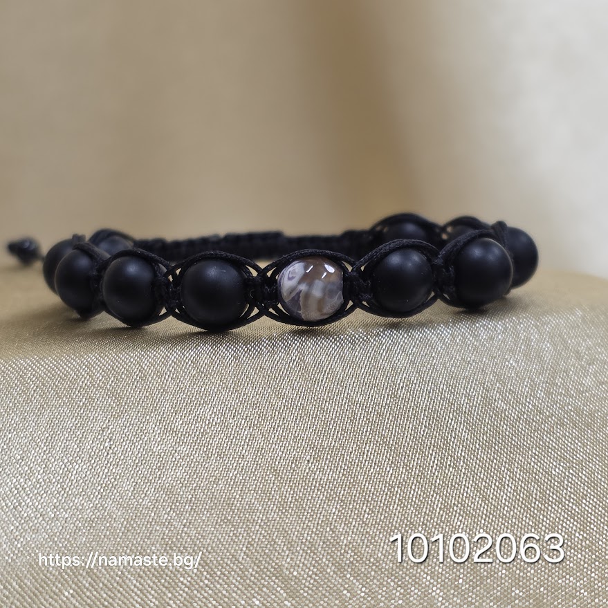 Материалите са подбрани с внимание и любов – естествен оникс и кафяв ахат с фино полирани топчета, вплетени в здрава и естетична плетка.