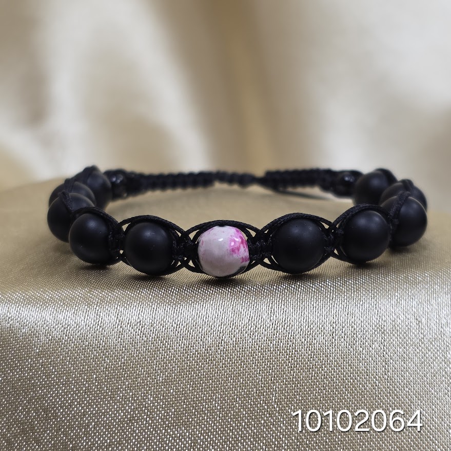 Гривна „Сърцето на нощта“ е съчетание на дълбоката защитна енергия на оникса и нежната, лекуваща вибрация на бяло-розовия ахат. Тя носи послание за вътрешно равновесие – как тъмнината и светлината в нас могат да се обичат, да се допълват и да изграждат стабилна и хармонична личност. В света, в който често се налага да бъдем силни и решителни, тази гривна ти напомня, че силата е още по-могъща, когато е закотвена в любовта, състраданието и мекотата.
